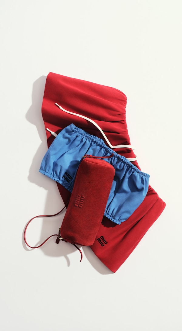 A wardrobe that is modern, spirited and bold, captures a relaxed, sportswear-inspired but always elegant frame of mind. Micro-mini tennis skirts, oversized blousons and trackpants in technical silks, dynamic striped knits, cotton poplin sundresses and a second collaboration with Petit Bateau - French designer of exquisitely crafted underwear - are worn with iconic Miu Miu accessories, infinitely intimate possessions filled with the essentials for a life lived well.