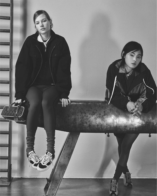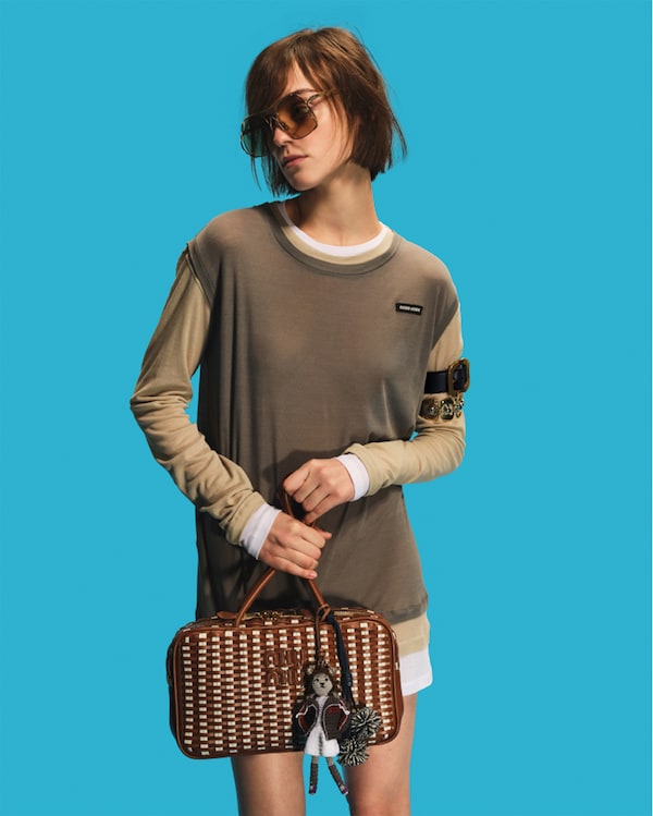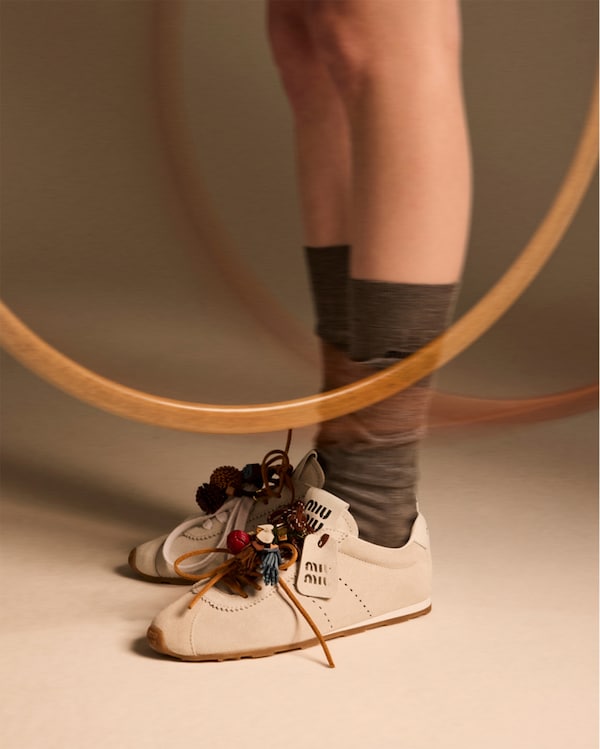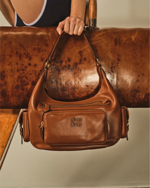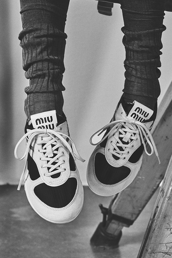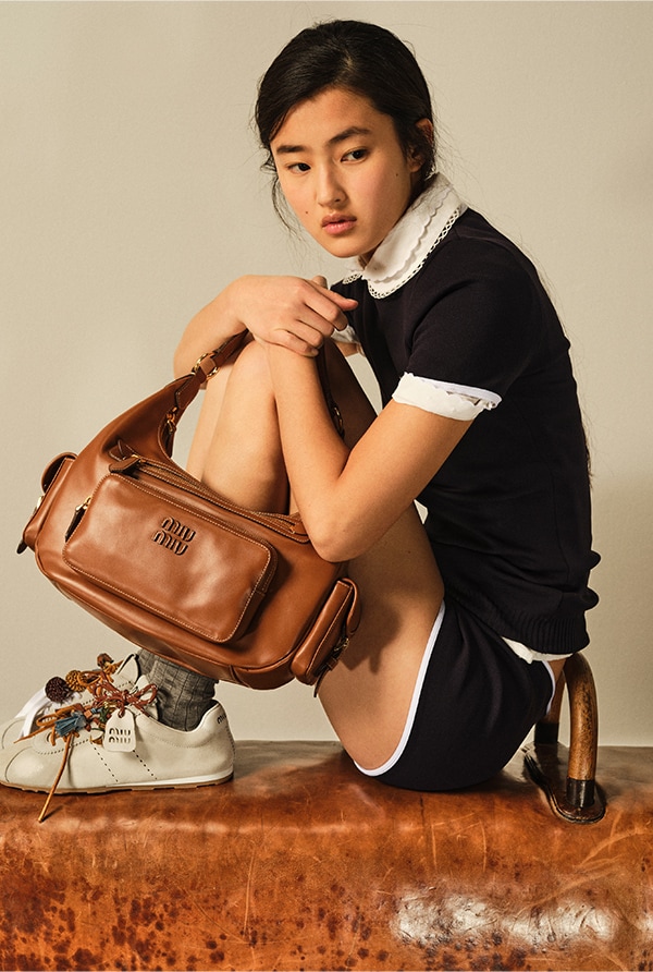 Iconic bags, including the Wander, Arcadie, Aventure and Beau, in smooth, woven and matelassé leather, as well as sturdy canvas, accented with sporty piping and in a special new color, astral, have been created especially for the occasion. Also exclusive are iterations of the Pocket bag, revisited in more formal leather, and Miu Miu backpacks, integral to the sportswear world. Plume, Tyre and Gymnasium sneakers are fresh from the runway, and here too is the new Boxeur style, available for the first time and online only.