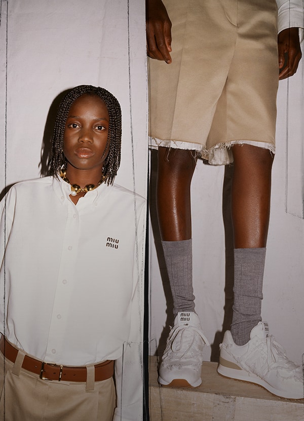 This new proposal is captured by Tyrone Lebon in a campaign of still and moving image. Featuring model Alix Bouthors, singer-songwriter Liv.e and actor Mame Bineta Sane, the cast encapsulates this collaboration’s cross-disciplinary identity and strong individuality. A series of triptych photographic collages and lo-fi film shorts, the campaign reflects reality - the reality of these Miu Miu girls, and the clothes they live in.