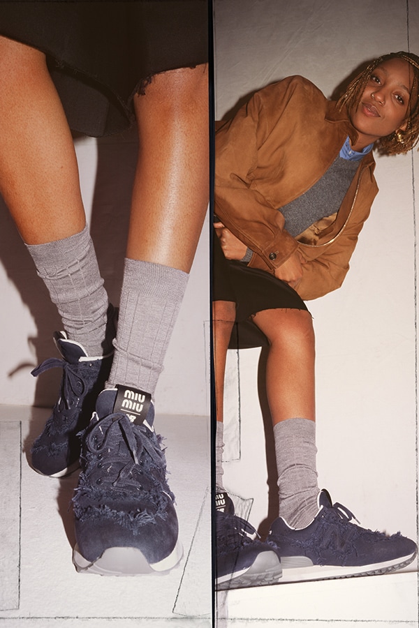 For the Spring/Summer 2022 Miu Miu collection, Miuccia Prada reimagines the 1980’s New Balance 574 sneaker in a unique collaboration with the iconic heritage brand.