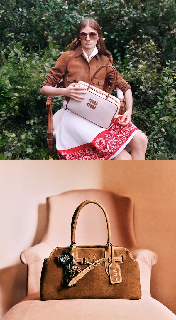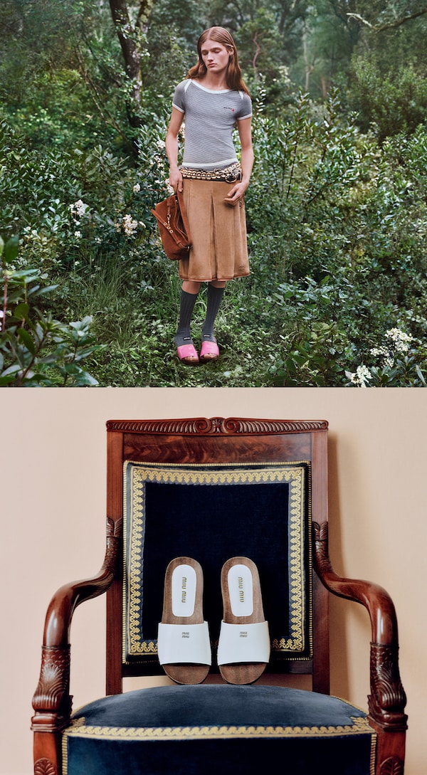 A natural beauty, an emancipated spirit, a fresh reimagining of an archetypal summer wardrobe. The 2025 Miu Miu L’Été Collection and Campaign moves outside. Located in a verdant space, both tranquil and energising, endless summer days and balmy evenings are enjoyed in quiet contemplation, furnished with long-loved antiques, drawn from an eclectic interior. A holiday refuge, a home away from home.