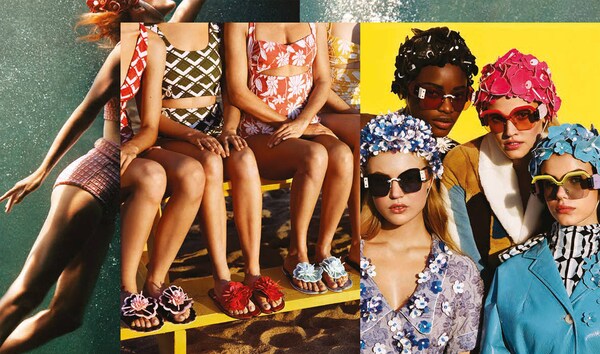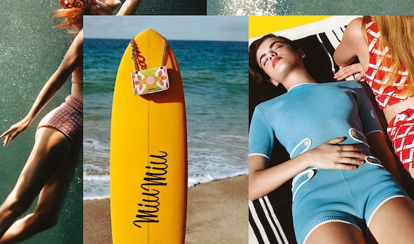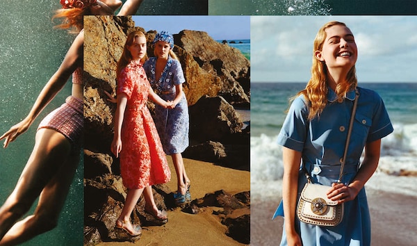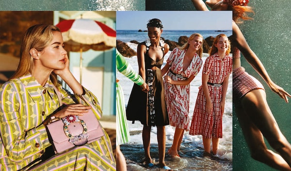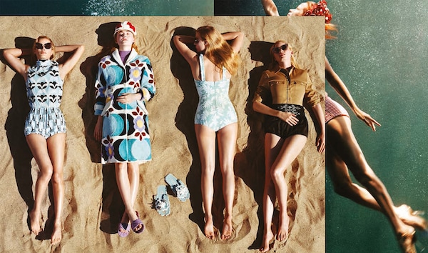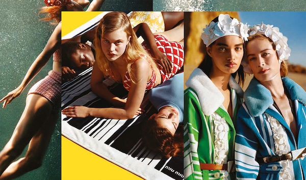 本季,这位英国摄影师与女演员Elle Fanning及多位代表了时尚产业里不同风情面貌的偶像Karen Elson、Carolyn Murphy和Lara Stone等合作。拍摄场景是无拘无束的典型阳光海滩,令人回想起《安逸人生》(Il Sorpasso)和《沙滩毯宾果》(Beach Blanket Bingo)等经典夏季电影。不过,在风和日丽的表象之下,《忽而今夏》延续了Miu Miu对现代女性气质的探究,以及对演员、it girl、模特和明星等语义模糊词汇的探究。