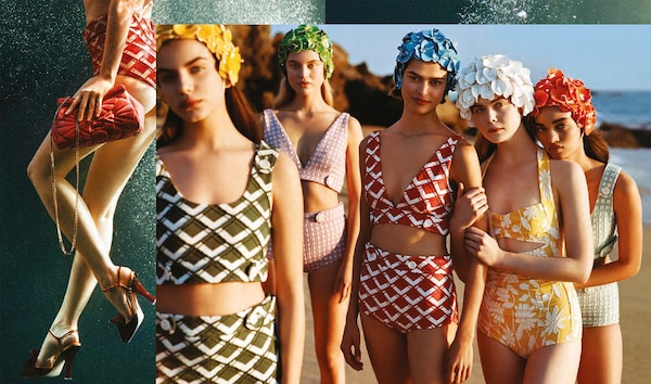 Miu Miu 2017春夏系列本宛如一幅欢乐唯美的拼贴画,让人轻易联想到不同年代、美学和所谓的符合年龄之着装打扮指南。它再次体现了Miuccia Prada对女性时装的反复思考:女人想要穿什么,她被期许怎么穿,她曾经穿过什么,她可以穿什么;还有这些想法相互撞击下会带来什么。奢华皮革钱包与橡胶游泳帽的组合强化夸张和断层的主题:从外套到针织比基尼,所有图案都被放大到极致又极具维度感。在这里,Miu Miu女孩再次逃离了严格归类或显著刻板印象的窠臼。她的多重个性超越了职业和社会阶层的框架,正如她的沙滩造型,在确立女性形象的同时又模糊其内涵。