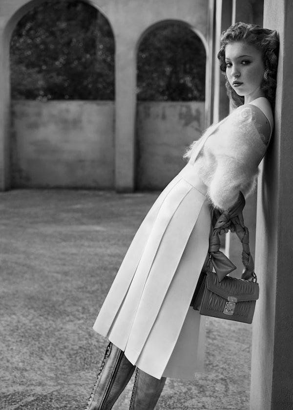 本系列构型、工艺与对话中的并置元素与广告大片构造方式彼此呼应。多种对立的视角和风格、静态和动态的图像、黑白和跃动的色彩、极致的女性和男性凝视彼此碰撞对比,塑造出主体与客体的概念。Liz Collins和Lynette Garland的摄影与Call This Number(Steve Mackey & Douglas Hart)和Robbie Mailer-Howatt的视频及静态图片融合,相得益彰。 包括Tomiwa Adeshina、Pia Ekman、Bo Gebruers、Bella Hadid、唐赫、Lea Julian、Jordan Leftwich、Lila Moss、Patrycja Piekarska、Alexis Sundman、雎晓雯、Kaila Wyatt在内的一众模特倾情演绎,刻画鲜明的Miu Miu女孩形象。