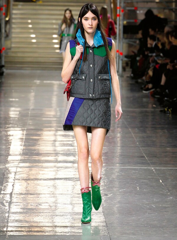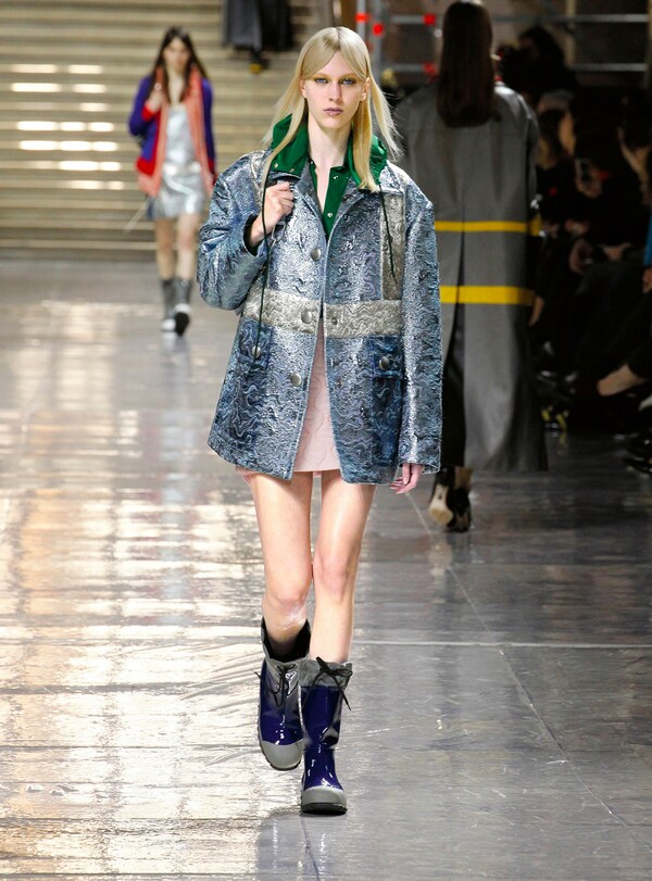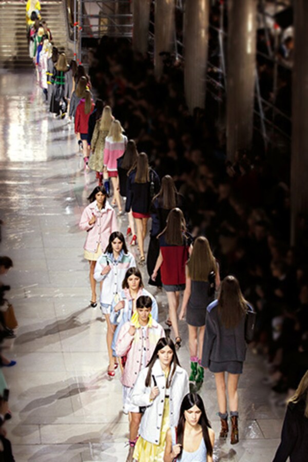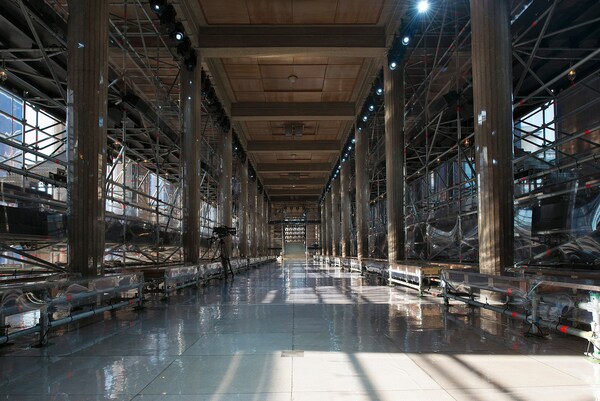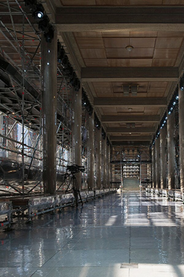 Miu Miu 2014 秋冬时装秀旨在充分利用巴黎耶纳宫(Palais d’Iena)的壮丽与宏伟。 复杂而冷峻的建筑支架将多柱式建筑大厅(Salle Hypostyle)内雄伟庄严的柱廊圈框在其中,从而构成中央秀台。部分支架则沿着经济、社会和环境理事会办公区(CESE)搭建,从而分隔出社交区域。