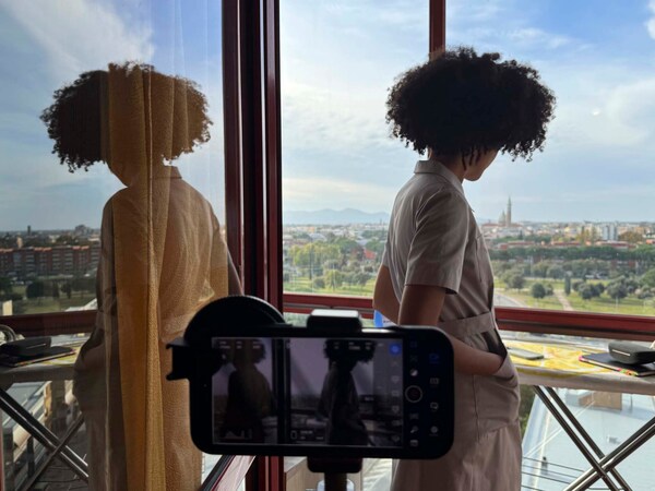 《Autobiografia di una Borsetta》与Women’s Tales以往每一部短片的根本不同之处在于故事的原创视角。从一开始,Joanna就问自己:“手袋的视角是什么? 手袋怎样看待世界? 如果它像昆虫一样看世界呢?” 这样的思考促使她用超广角镜头来展示手袋所见证的一切。“它客观地看待自己的人生。” 四部iPhone 16的使用赋予了Joanna创作灵活性,这也反映在影片叙事当中——富裕与贫穷,守法与犯罪,社会层层切面的浮世绘一一剖解,影片中的角色均由非职业演员扮演。